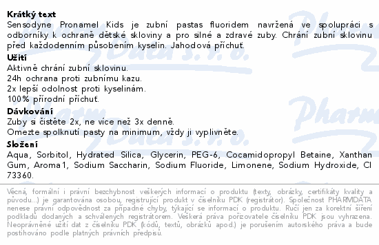 Sensodyne Pronamel Kids je zubní pastas fluoridem navržená ve spolupráci s odborníky k ochraně dětské skloviny a pro silné a zdravé zuby. Chrání zubní sklovinu před každodenním působením kyselin. Jahodová příchuť.