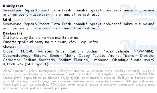 Sensodyne Repair&Protect Extra Fresh pomáhá opravit poškozená místa v zubovině jejich přirozeným zacelováním a chránit citlivé části zubů.