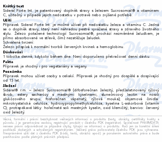 Sideral Forte Int. je patentovaný doplněk stravy s železem Sucrosomial® a vitamínem C, užitečný v případě jejich nedostatku v potravě nebo zvýšené potřebě.