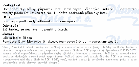 Homeopatický léčivý přípravek bez schválených léčebných indikací. Biochemické tablety podle Dr. Schüsslera No. 11. Čtěte pozorně příbalový leták.