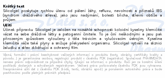 Silicolgel poskytuje rychlou úlevu od pálení žáhy, refluxu, nevolnosti a příznaků IBS (syndrom dráždivého střeva), jako jsou nadýmání, bolesti břicha, střevní obtíže a průjem.