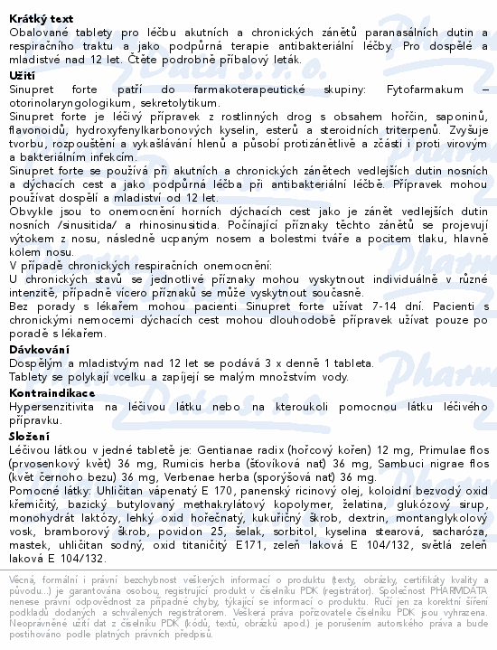 Obalované tablety pro léčbu akutních a chronických zánětů paranasálních dutin a respiračního traktu a jako podpůrná terapie antibakteriální léčby. Pro dospělé a mladistvé nad 12 let. Čtěte pozorně příbalový leták.