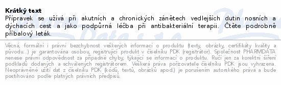 Přípravek se užívá při akutních a chronických zánětech vedlejších dutin nosních a dýchacích cest a jako podpůrná léčba při antibakteriální terapii. Čtěte pozorně příbalový leták.