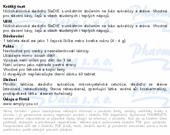Nízkokalorické sladidlo SlaDIE s unikátním složením na bázi sukralózy a stévie. Vhodné pro slazení kávy, čajů a všech studených i teplých nápojů.