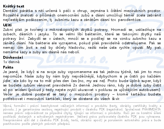 Dentální párátka s nití určená k péči o chrup, zejména k čištění mezizubních prostor. Rozsáhlé znalosti o příčinách onemocnění zubů a dásní umožňují téměř zcela zabránit nejčastějším poškozením, tj. zubnímu kazu a zánětům dásní tzv. parodentóze.