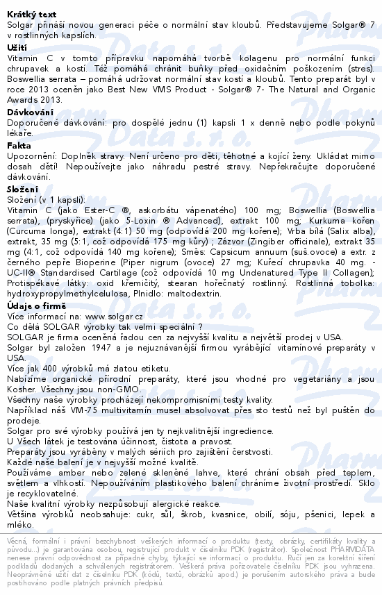 Solgar přináší novou generaci péče o normální stav kloubů. Představujeme Solgar® 7 v rostlinných kapslích.