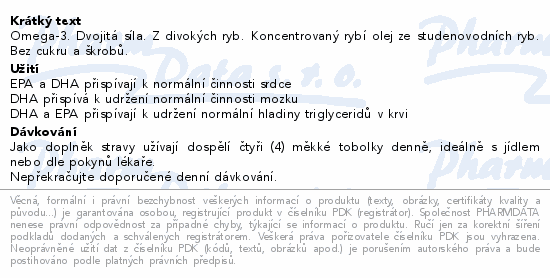 Omega-3. Dvojitá síla. Z divokých ryb. Koncentrovaný rybí olej ze studenovodních ryb. Bez cukru a škrobů.