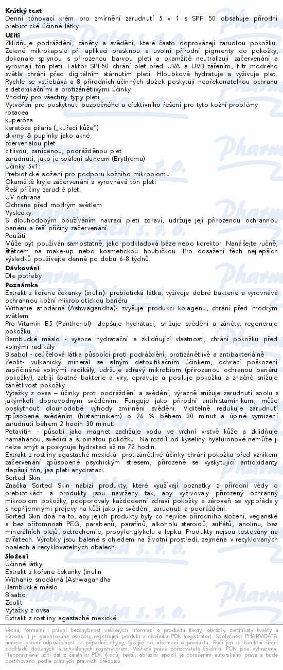 Denní tónovací krém pro zmírnění zarudnutí 5 v 1 s SPF 50 obsahuje přírodní prebiotické účinné látky.