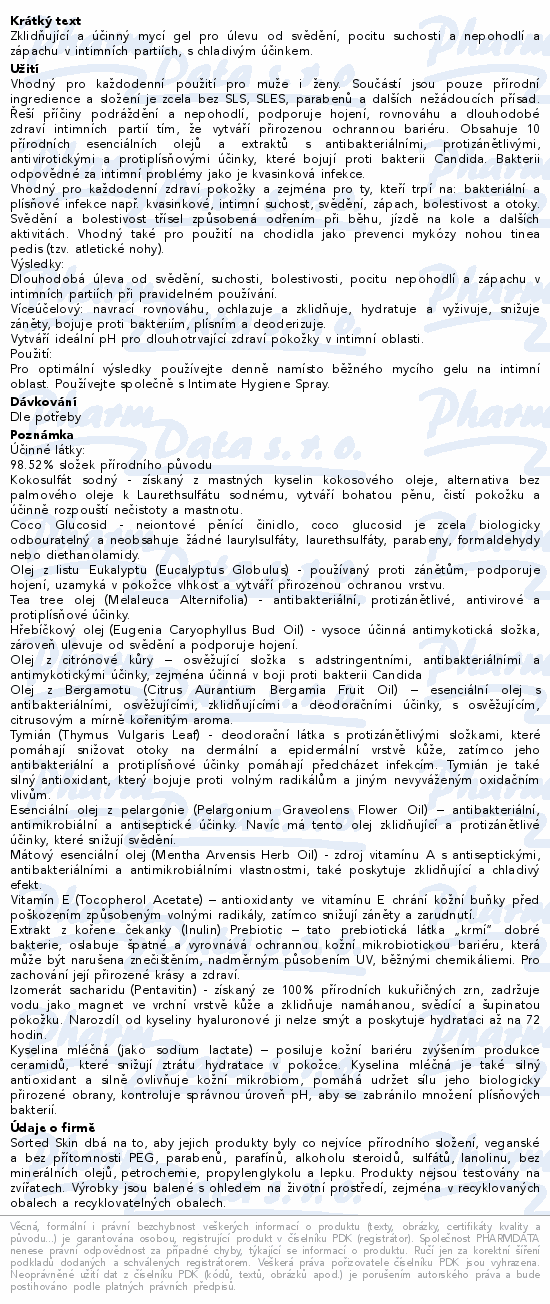Zklidňující a účinný mycí gel pro úlevu od svědění, pocitu suchosti a nepohodlí a zápachu v intimních partiích, s chladivým účinkem.