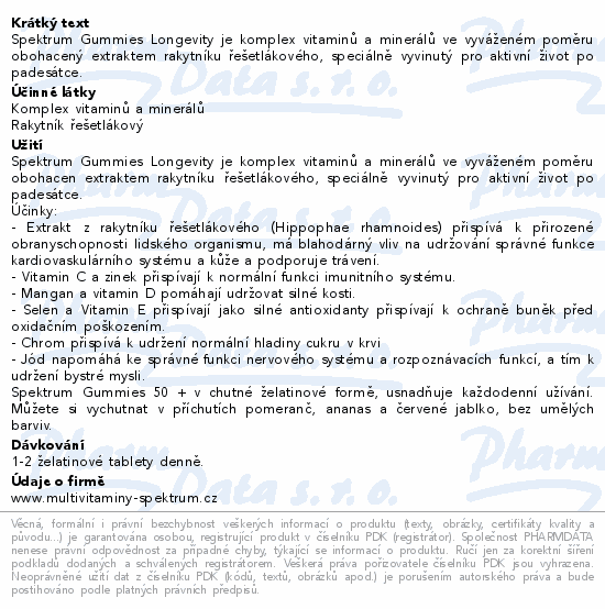 Spektrum Gummies Longevity je komplex vitaminů a minerálů ve vyváženém poměru obohacený extraktem rakytníku řešetlákového, speciálně vyvinutý pro aktivní život po padesátce.