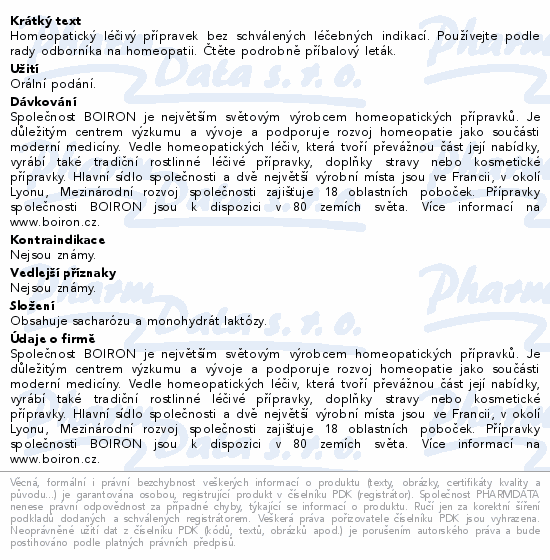 Homeopatický léčivý přípravek bez schválených léčebných indikací. Používejte podle rady odborníka na homeopatii. Čtěte pozorně příbalový leták.