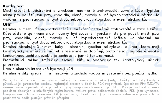 Mast určená k odstranění a změkčení nadměrně zrohovatělé, ztvrdlé kůže. Typická místa pro použití jsou paty, chodidla, dlaně, mozoly a jiná hyperkeratotická ložiska. Je vhodná na psoriatickou, ichtyotickou, seboroickou, atopickou a ekzematickou kůži.