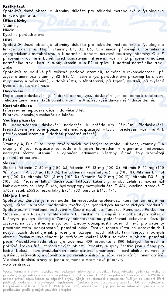 Spofavit® dražé obsahuje vitaminy důležité pro základní metabolické a fyziologické funkce organizmu.