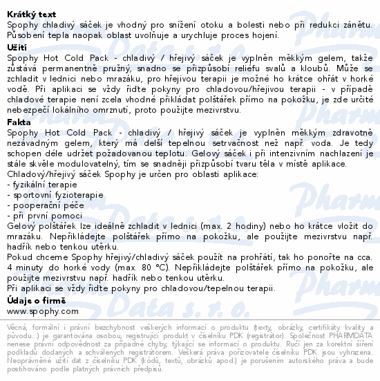 Spophy chladivý sáček je vhodný pro snížení otoku a bolesti nebo při redukci zánětu. Působení tepla naopak oblast uvolňuje a urychluje proces hojení.