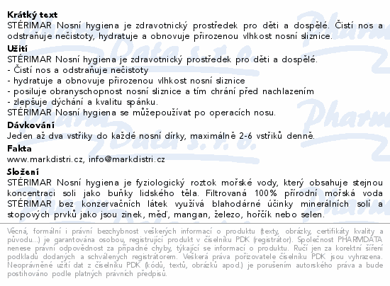 STÉRIMAR Nosní hygiena je zdravotnický prostředek pro děti a dospělé. Čistí nos a odstraňuje nečistoty, hydratuje a obnovuje přirozenou vlhkost nosní sliznice.