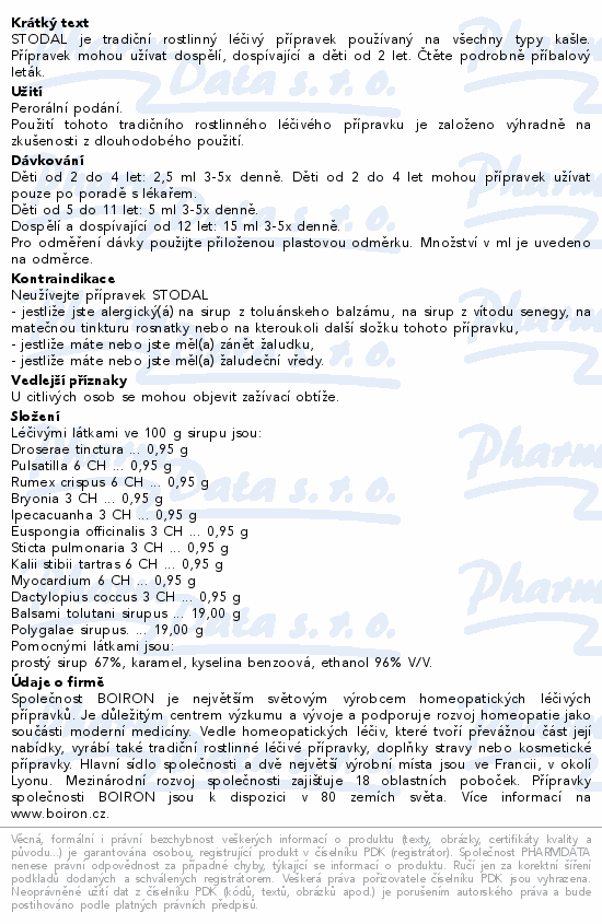 STODAL je tradiční rostlinný léčivý přípravek používaný na všechny typy kašle. Přípravek mohou užívat dospělí, dospívající a děti od 2 let. Čtěte pozorně příbalový leták.