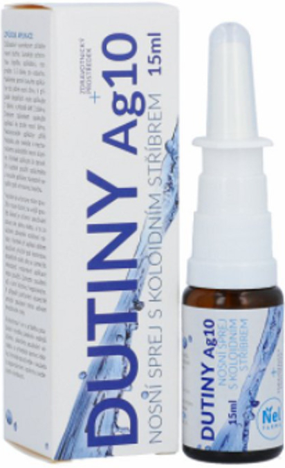 DUTINY Ag10 nosní sprej - výrobek je určen k podpůrnému použití v průběhu zánětu nosních dutin a nosních infekcí. Obsahuje koloidní stříbro. Vhodný i pro děti od 6-ti let. Zdravotnický prostředek.