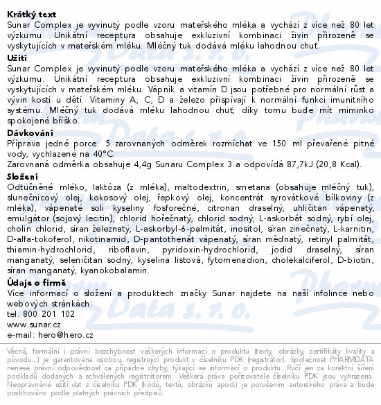 Sunar Complex je vyvinutý podle vzoru mateřského mléka a vychází z více než 80 let výzkumu. Unikátní receptura obsahuje exkluzivní kombinaci živin přirozeně se vyskytujících v mateřském mléku. Mléčný tuk dodává mléku lahodnou chuť.