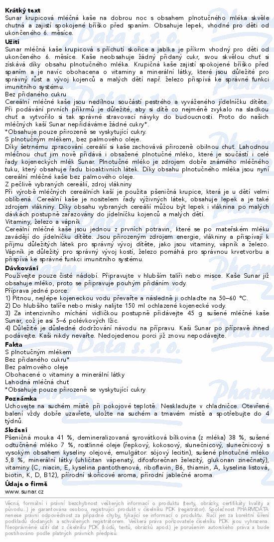 Sunar Ml.krup.kaše Skořice/jablko dobrou noc 210g