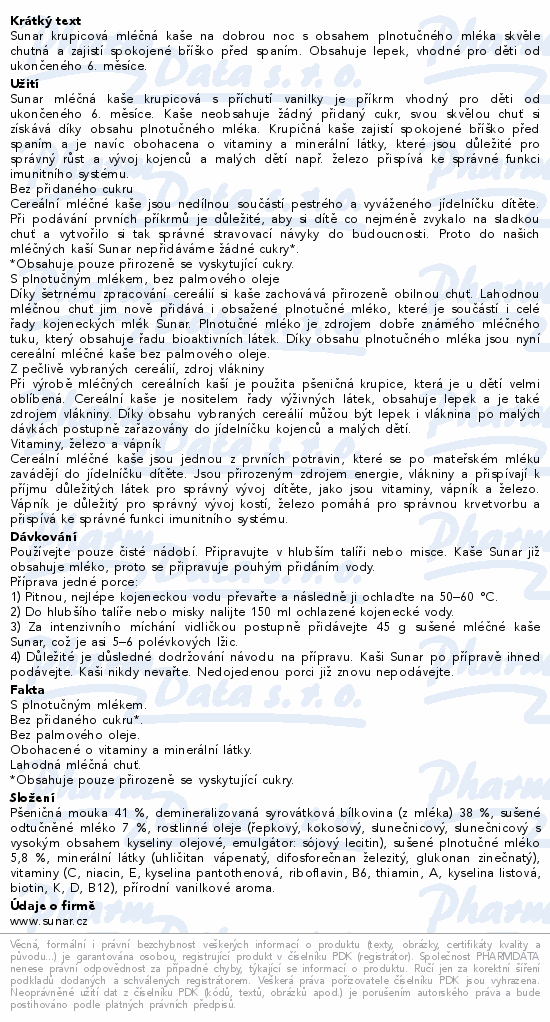 Sunar Ml.krupicová kaše Vanilka na dobrou noc 210g
