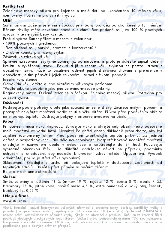 Zeleninovo-masový příkrm pro kojence a malé děti od ukončeného 10. měsíce věku, sterilovaný. Potravina pro zvláštní výživu.