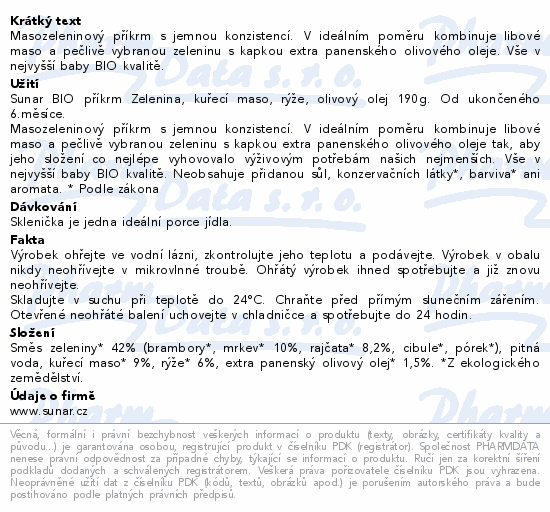 Sunar příkrm Zelenina kuř.maso rýže ol.ol.BIO 190g