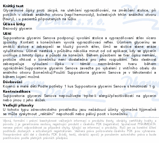 SUPP.GLYCERINI SANOVA Glycerín.čípky Děti 1g 5ks
