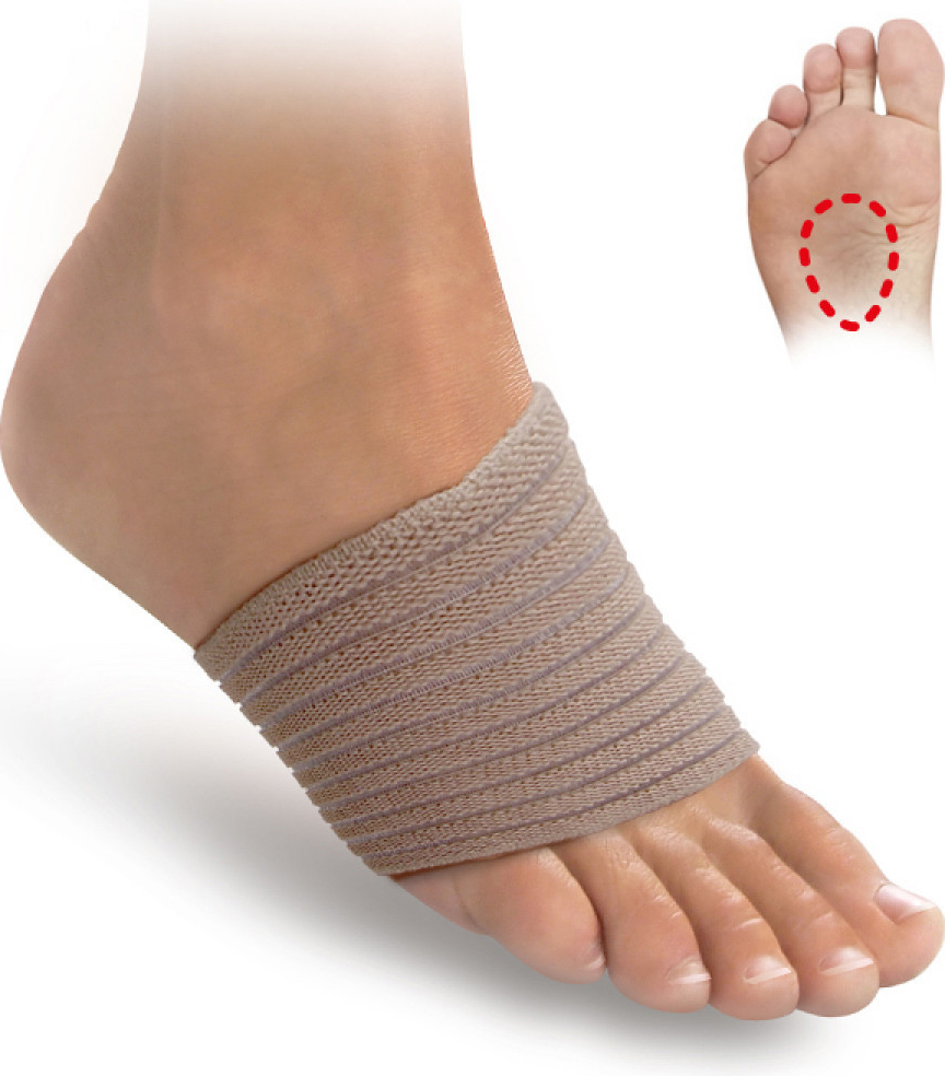 7cm široký pás pruženky je sešitý do oválu, který obepíná přední část nohy. Přeložené konce vytvářejí kapsu pro vložení latexového srdíčka.