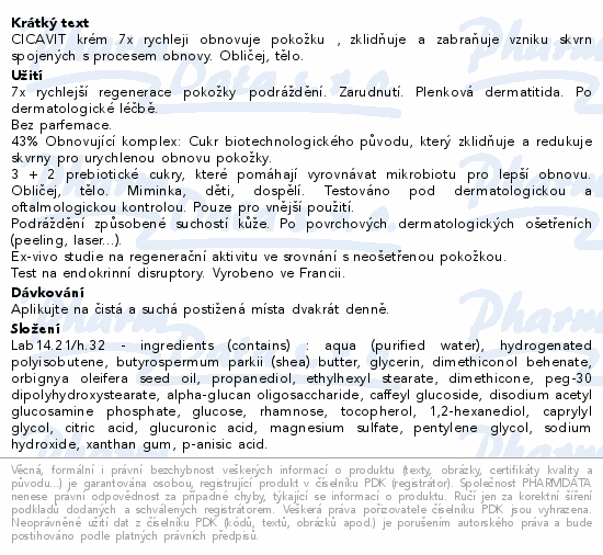 CICAVIT krém 7x rychleji obnovuje pokožku , zklidňuje a zabraňuje vzniku skvrn spojených s procesem obnovy. Obličej, tělo.