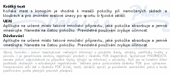 Koňská mast s konopím je vhodná k masáži pokožky při namožených zádech a kloubech a pro zmírnění svalové únavy po sportu či fyzické zátěží.
