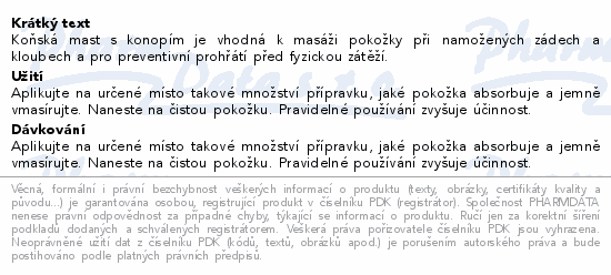 Koňská mast s konopím je vhodná k masáži pokožky při namožených zádech a kloubech a pro preventivní prohřátí před fyzickou zátěží.