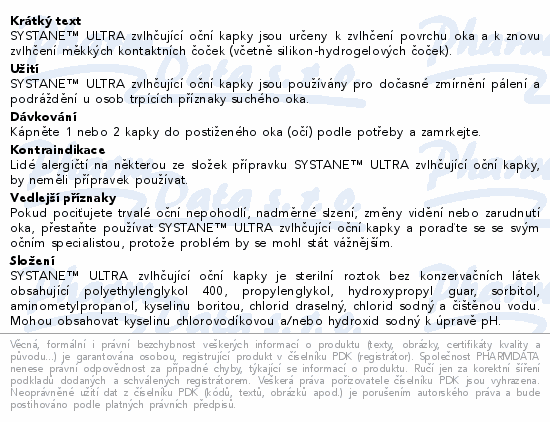 SYSTANE™ ULTRA zvlhčující oční kapky jsou určeny k zvlhčení povrchu oka a k znovu zvlhčení měkkých kontaktních čoček (včetně silikon-hydrogelových čoček).