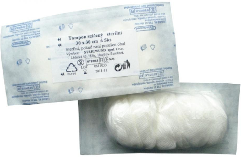 Tampón stáčený z gázy sterilní 30x30/5ks Steriwund