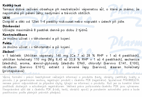 Tamsus dobré zažívání obsahuje ph neutralizační vápenatou sůl, o které je známo, že napomáhá při pálení žáhy, nadýmání a trávicích obtížích.