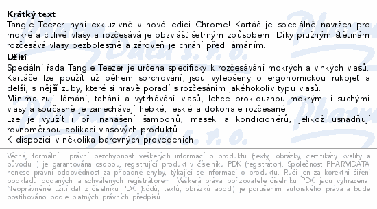 Tangle Teezer nyní exkluzivně v nové edici Chrome! Kartáč je speciálně navržen pro mokré a citlivé vlasy a rozčesává je obzvlášť šetrným způsobem. Díky pružným štětinám rozčesává vlasy bezbolestně a zároveň je chrání před lámáním.