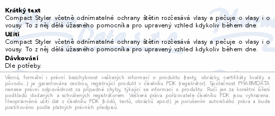 Compact Styler včetně odnímatelné ochrany štětin rozčesává vlasy a pečuje o vlasy i o vousy. To z něj dělá úžasného pomocníka pro upravený vzhled kdykoliv během dne.
