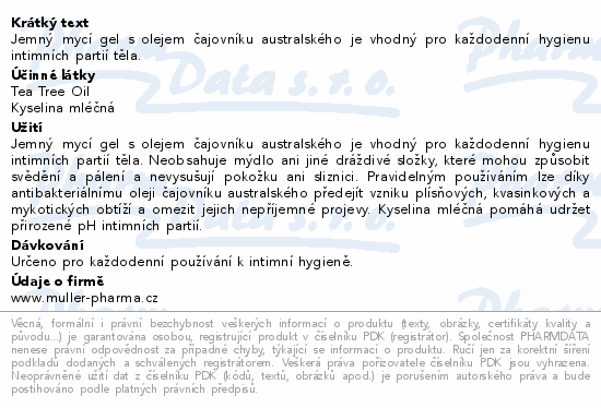 Jemný mycí gel s olejem čajovníku australského je vhodný pro každodenní hygienu intimních partií těla.