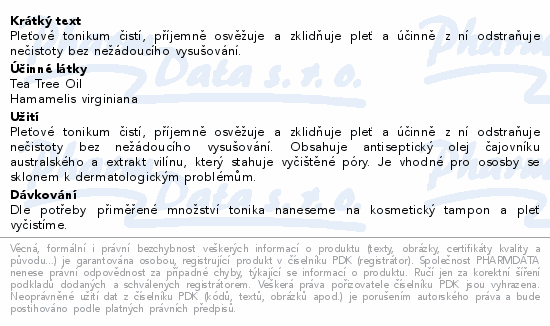 Pleťové tonikum čistí, příjemně osvěžuje a zklidňuje pleť a účinně z ní odstraňuje nečistoty bez nežádoucího vysušování.