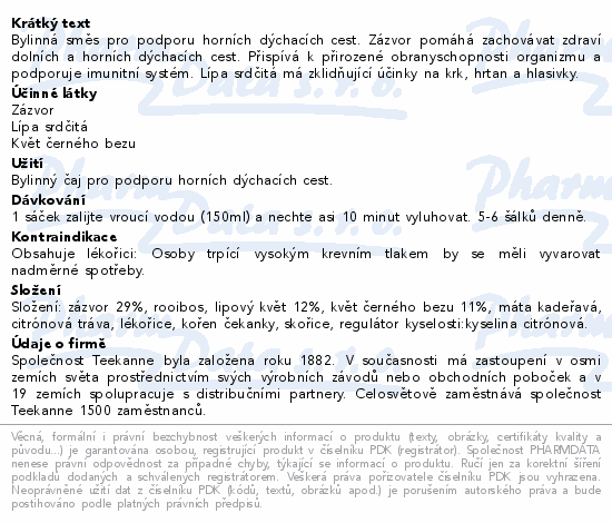 Bylinná směs pro podporu horních dýchacích cest. Zázvor pomáhá zachovávat zdraví dolních a horních dýchacích cest. Přispívá k přirozené obranyschopnosti organizmu a podporuje imunitní systém. Lípa srdčitá má zklidňující účinky na krk, hrtan a hlasivky.