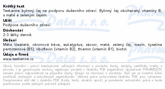 Teekanne bylinný čaj na podporu duševního zdraví. Bylinný čaj obohacený vitamíny B, s maté a zeleným čajem.