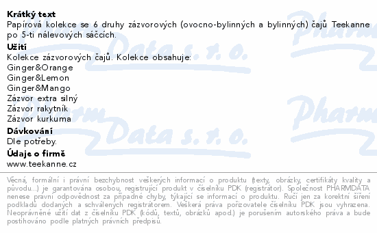Papírová kolekce se 6 druhy zázvorových (ovocno-bylinných a bylinných) čajů Teekanne po 5-ti nálevových sáčcích.