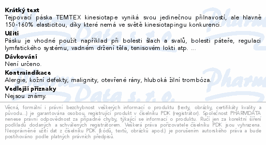 Tejpovací páska TEMTEX kinesiotape vyniká svou jedinečnou přilnavostí, ale hlavně 150-160% elasticitou, díky které nemá ve světě kinesiotapingu konkurenci.
