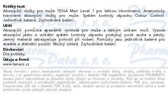Absorpční vložky pro muže TENA Men Level 1 pro lehkou inkontinenci. Anatomicky tvarované absorpční vložky pro muže. Systém kontroly zápachu Odour Control. Jednotlivě balené. Zvýhodněné balení.