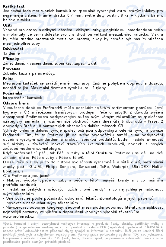 Jedinečná řada mezizubních kartáčků se speciálně vybranými extra jemnými vlákny pro nejjemnější čištění. Průměr drátku 0,7 mm, světle žlutý odstín, 8 ks + krytka v balení, baleno v sáčku.