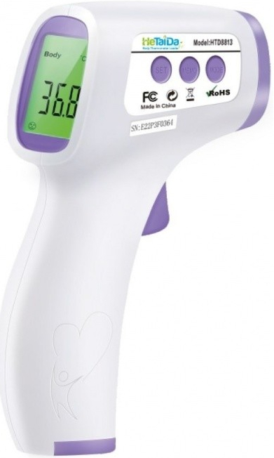 Bezkontaktní teploměr Hetaida je infračervený teploměr měřící teplotu čela nebo okolních předmětů. Rychlé 1 vteřinové měření, 50 pamětí, přesnost 0,2°C. Má automatické vypínání. Podsvícený displej s různými barvami dle naměřené teploty.