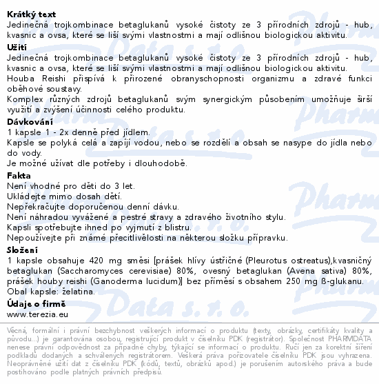 TEREZIA BETAGLUKAN Trio Komplex Forte 500 mg 30 kapslí