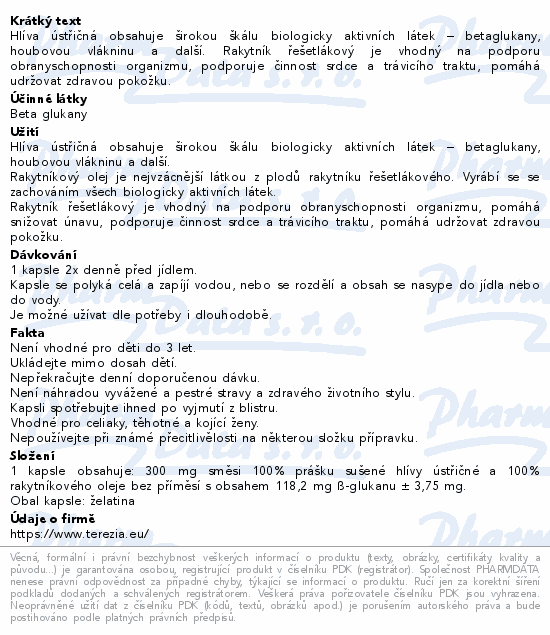 TEREZIA Hlíva ústřičná s rakytníkovým olejem 100 + 100 kapslí