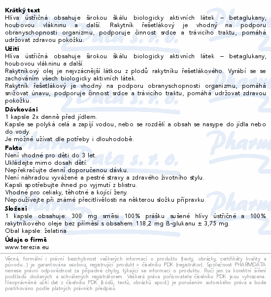 TEREZIA Hlíva ústřičná s rakytníkovým olejem 60+60 kapslí