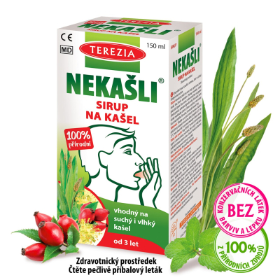 Sirup NEKAŠLI je bylinkovým pohlazením pro podrážděný krk v období nachlazení. Obsahuje 6 extraktů (jitrocel, šípky, máta, lipový květ, mateřídouška a smrk). Jitrocelový sirup na kašel spolu s ostatními bylinkami pomáhá zmírnit příznaky spojené s nachlazením, jako je například kašel, bolest v krku, podráždění hlasivek či chrapot. Šípek s jitrocelem navíc podporují imunitu a máta pomůže vyčerpanému organizmu relaxovat. Další složkou sirupu je koncentrovaná šťáva z hroznového vína, která byla obohacena o zmíněné extrakty a citronovou šťávu. Díky tomu má neodolatelnou chuť, jež si zamilují děti i nároční dospělí.