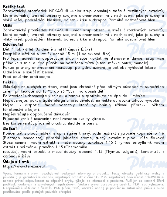 TEREZIA NEKAŠLI Junior sirup na kašel 150 ml